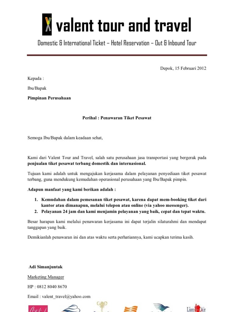 Contoh Surat Penawaran Tiket Pesawat Ke Perusahaan / Contoh Surat Pemesanan Tiket Pesawat Backup Gambar / Chord gitar karma vicky salamor if there is a picture that violates the rules or you want to give criticism and suggestions about contoh proposal kerjasama travel dengan perusahaan.